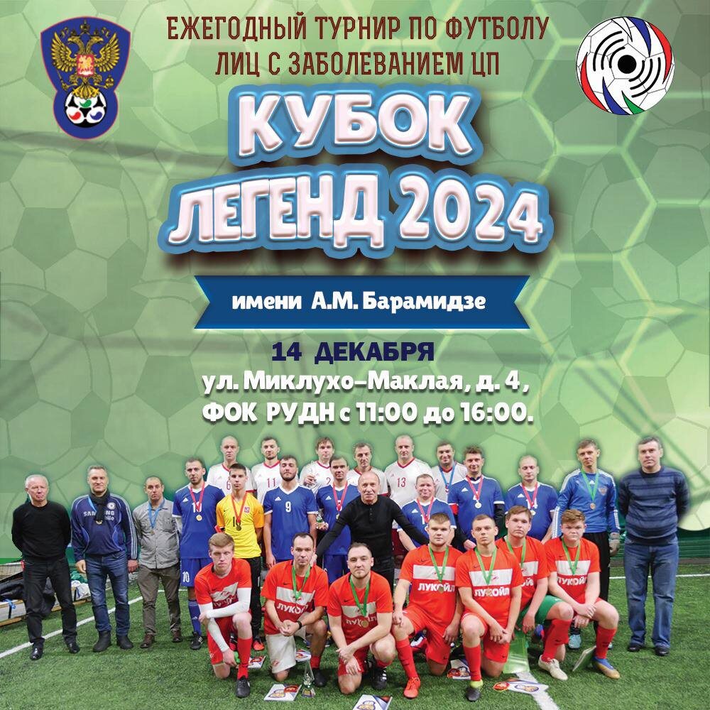 14 декабря в Москве пройдет Ежегодный и очень значимый турнир по футболу лиц с заболеванием ЦП (церебральный паралич)-"КУБОК ЛЕГЕНД" Соревнования проводятся, как дань памяти выдающегося Заслуженного тренера России, человека который самостоятельно создал футбол ЦП в России и привел национальную команду России к званию сильнейшей команды в Мире-Автандила Михайловича Барамидзе. В турнире примут участие как заслуженные мастера спорта по футболу ЦП-игроки национальной команды России по футболу ЦП, так и начинающие спортсмены, чей путь в парафутболе только начинается. Соревнование данного формата являются отличной площадкой для встречи наших Чемпионов, общения и самое главное передачи ценного опыта от мастеров футбола молодым спортсменам. Напомню, что Национальная команда России по футболу лиц с заболеванием ЦП является: 4-х кратными Чемпионами Мира Чемпионами Европы 2-х кратные Чемпионы Паралимпийских игр. Именно эти ребята достойны уважения и внимания со стороны общественности. Фонд развит