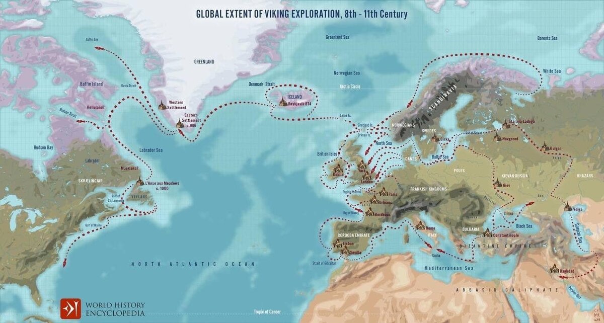 ...но трудно уложить в своей голове, что должно было твориться в голове Эйрика, который взял курс через не самое тёплое море — вообще-то северную часть Атлантического океана — в неразведанном направлении, не имея понятия о том, что через пару-тройку сотен морских миль ему встретится земля. А если бы не встретилась? И тем не менее, разругавшийся с другими вождями Эйрик преодолел океан, обнаружил землю; исследовал восточное, южное и юго-западное побережье открытого им острова и назвал его Гренландией — Зелёной землёй. В шутку или из маркетинговых соображений — тоже досконально не известно, есть разные мнения. Масштаб открытия п
