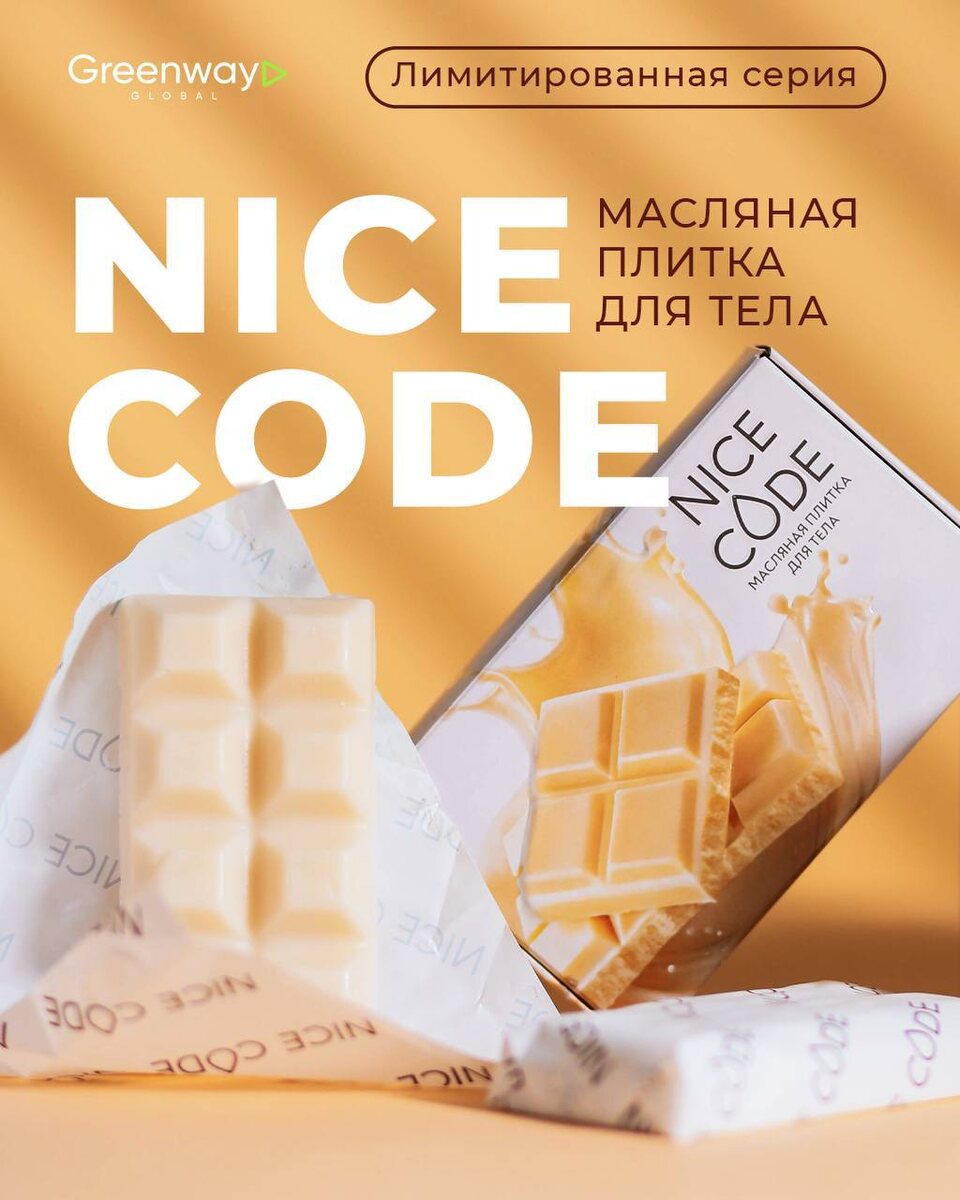 Масляная плитка для тела Nice Code — дата запуска 2 декабря! Настоящий эликсир для кожи 🌟 Представляем новинку — масляная плитка для тела NICE CODE 🍫 Уникальное средство содержит комплекс натуральных масел, которые интенсивно питают и насыщают кожу ценными веществами ✨ Благодаря насыщенной формуле плитка: ✅ Увлажняет и смягчает кожу. ✅ Повышает эластичность. ✅ Защищает от негативных факторов окружающей среды. Нежная текстура легко распределяется по коже, оставляя после себя тонкий, соблазнительный аромат 🥰 ЦЕНА: 950₽