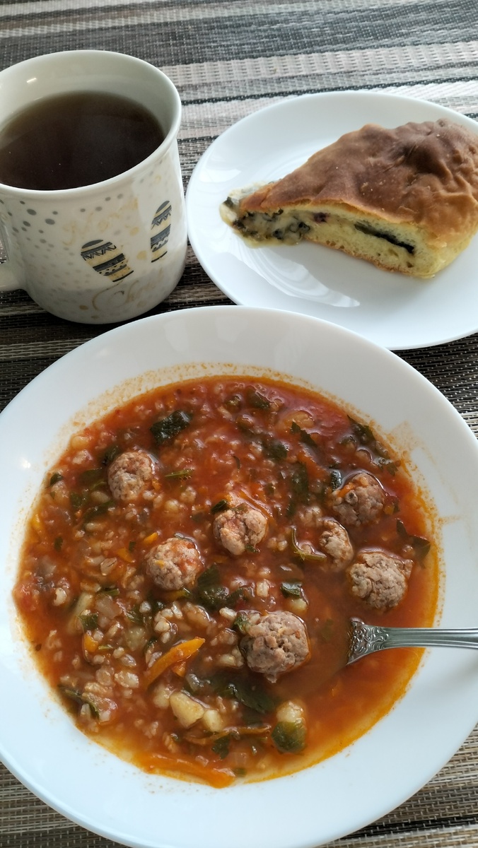 Вот это про моё состояние последнее время. Ложусь спать около 22 часов (край 22.30), просыпаюсь в 6, в выходные в 7. Вроде бы времени для сна достаточно. Но такие бредовые сны снятся, что утром с трудом раздираю глаза. И эта дребедень теперь будет до конца месяца. Учусь, учусь и снова учусь. В техникуме надо практику сдать, а перед этим отчёт по ней написать. На работе 5-6 аттестация на допуск, а 20 декабря аттестация на квалификацию. А сфера новая для меня, считай, с улицы пришла))) ничего не знаю, всё учу с нуля. Голова как Дом Советов. Вот, сегодня выходной. Надо хоть еды приготовить, а то из-за того, что проснуться не могу, несколько дней завтракаю бутерами и кофе. Нормальная еда тоже есть))) но в другое время))) суп себе сварила с фрикадельками, аж на 4 порции вышло, вот 4 дня его на ужин и ем На заднем плане неудавшийся осетинский пирог. Неудавшийся - потому что не надо было лениться, тесто нужно было всё же раскатать, а не руками растягивать, тогда бы было тоненькое и равноме