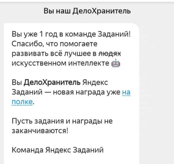 Всем привет! На днях мне пришло сообщение(оповещение) в ЯЗ о том, что я оказывается уже год скромно тружусь на этой площадке😊➡️ Время пролетело незаметно! У меня много статей про ЯЗ, решила сегодня некоторые из них вспомнить, кому интересно, можете ознакомиться. Мне и самой интересно было почитать и вспомнить как всё начиналось😄. Это была первая статья про ЯЗ➡️ Затем подбивала доходы за неделю ➡️ Ну и ещё несколько статей ➡️ Тогда, год назад было немного переживательно, смогу ли я хоть что-то зарабатывать в ЯЗ как зарабатывала ранее в Толоке( 300- 500 руб минимум в день стабильно). Также было непонятно, какие будут задания на новой площадке, перекочуют ли из Толоки мои любимые и прибыльные. В итоге спустя год я считаю, что ЯЗ ничем не хуже Толоки, разных заданий много, заработать копеечку можно. Поэтому я продолжаю оставаться здесь. P.S. Про погоду, год назад было -37 на Урале. Дубак. Сейчас -1. Тепло😁. Синоптики обещают тёплую зиму по всей России. Спасибо за внимание.