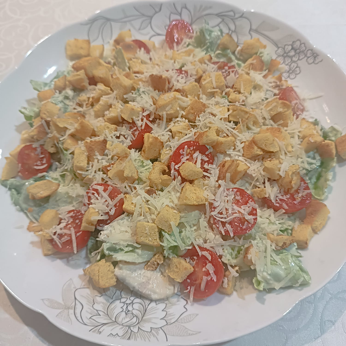 Безмайонезный салат цезарь с куриной грудкой и безглютеновыми сухариками + вкусный соус