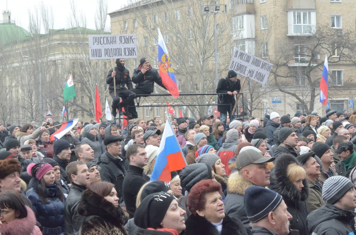 4 декабря 2013 года. В Донецке прошел многочисленный митинг против «Евромайдана». ◽️По разным данным в нем приняли участие от 12 000 до 15 000 человек. ◽️Митингующие собрались на площади у здания бывший облгосадминистрации, ныне – Дом правительства. ◽️В противовес киевским лозунгам, в Донецке вышли с призывами: «В России наши братья, в Европе – мы рабы», «Русский язык – наш родной язык», «Украина! Не слушай провокаторов – слушай себя!» ◽️Участники призывали Януковича, тогда еще президента Украины, принять меры, чтобы вернуть ситуацию в стране в правовое русло. ◽️В тот день функционеры из руководства Донецкой области ещё говорили что-то антимайданное. Большая часть из них вскоре оказалась по ту сторону донбасских баррикад, сбежав в Киев или куда подальше. ◽️Но тогда им ничего не мешало со сцены говорить о нависшей над Украиной угрозы революции. ◽️А в Киеве уже во всю силу набирал хаос «евроинтеграции».