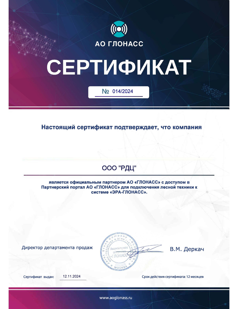 Поможем пройти идентификацию с Постановлением Правительства №1378 по номеру 8 800 350 36 62 – звоните! Или оставьте заявку здесь. ООО "РДЦ" - сертифицированный партнер по подключению лесной техники к системе "ЭРА-ГЛОНАСС".