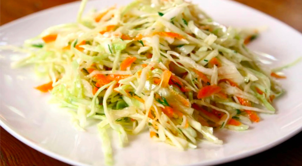 Витаминный салат из белокочанной капусты с огурцом и морковью