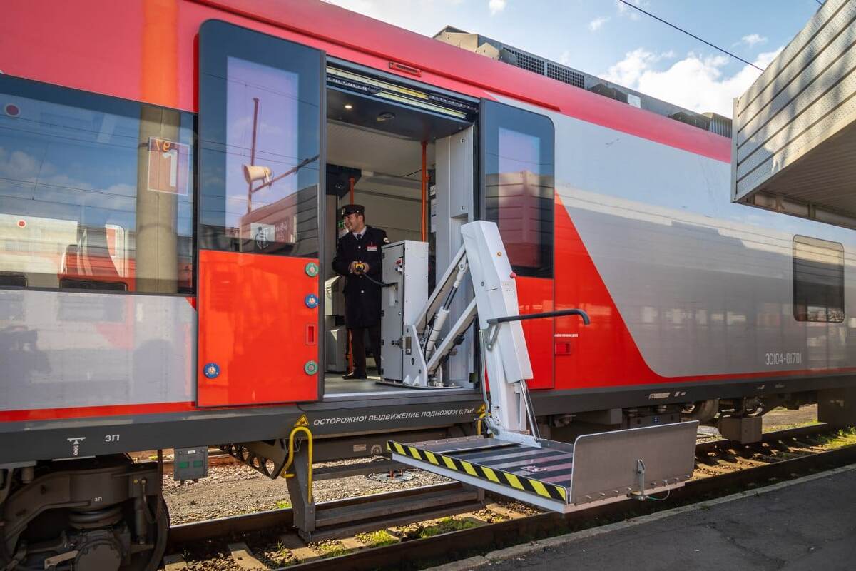Вагоны нового поезда оборудованы системами климат-контроля и видеонаблюдения. Остановки анонсируются на информационном табло. Возле каждого сидения имеется USB-розетка, а для пассажиров с малышами поезд оборудовали модулями с пеленальными столиками.
