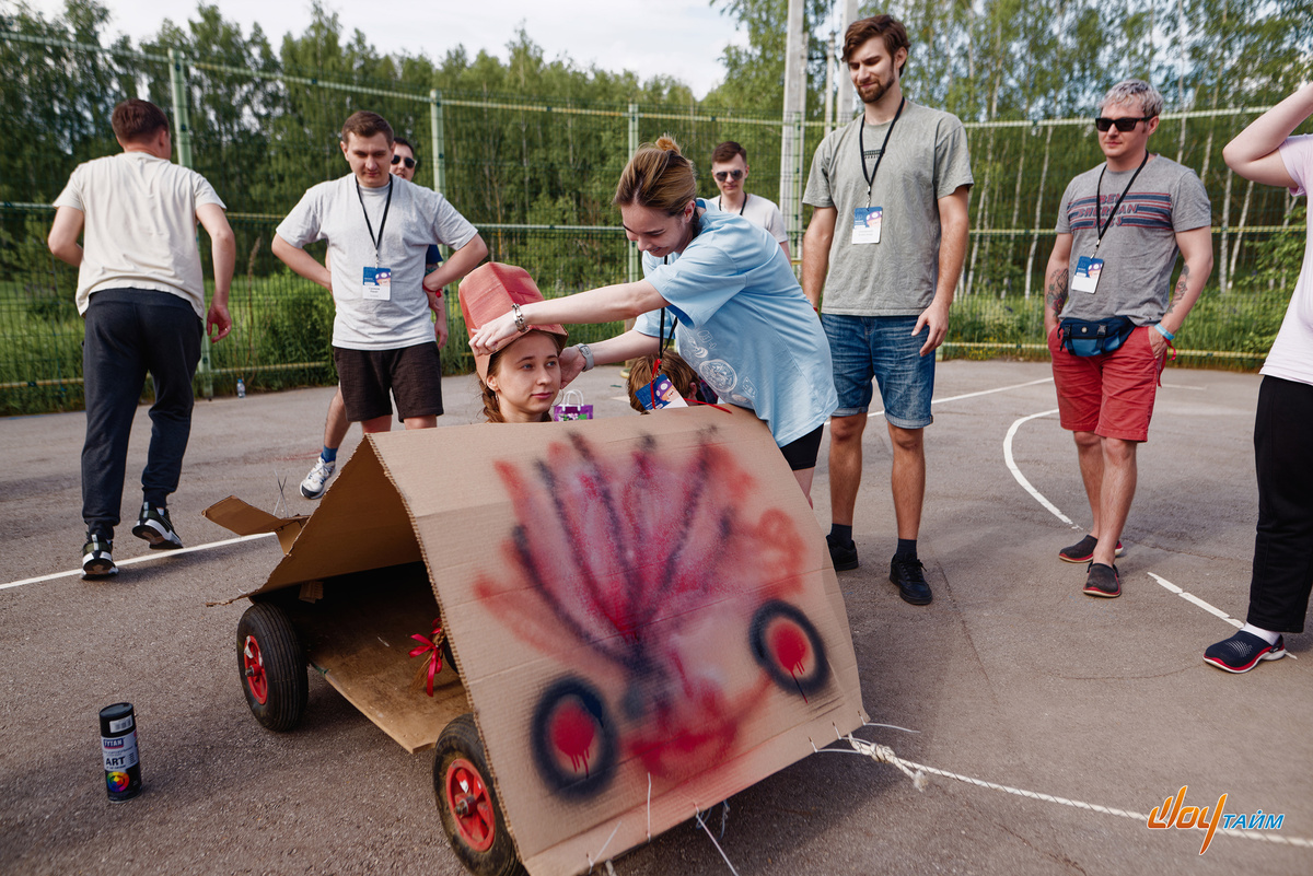 Конструирование и изготовление командных спортивных автомобилей из картона — это всегда супертворческий процесс! Но самое интересное начнётся, когда участники поедут... Фото Владимира Бубякина.