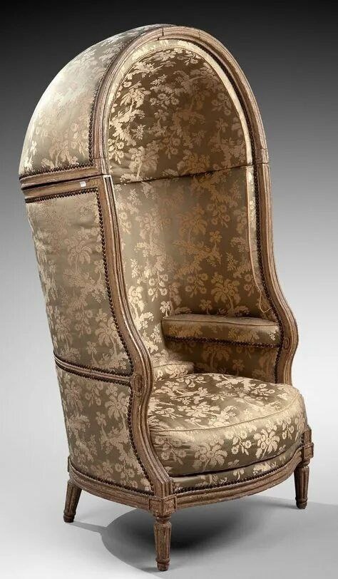 «Часовой» с капюшоном или Кресло привратника. «Кресла и столы, говорил он, предметы утомительные, ибо они всегда одинаковы и выражение у них не меняется — тупо уставятся на тебя и смотрят, так что даже неприятно становится, а ты на них смотришь столь же тупо». Ч. Диккенс Среди предметов мебели есть образцы, обладающие необычной наружностью, множеством имён и весьма запутанной историей происхождения. Право называться родиной монументального кресла, снабжённого высокой спинкой, широкими боковыми панелями – ушами и сферическим навесом оспаривают Англия и Франция. Жители Туманного Альбиона называют сей предмет Porter’s Chair – кресло привратника,французам он известен как Guérites – «часовой». Возможно, первые кресла такого типа были выполнены по образцу портшезов или тронных стульев, дополненных балдахином. Назначение у них было одно – это были кресла для привратников и швейцаров. Их устанавливали в холодных, не отапливаемых холлах у входа. Высокая спинка, глухие локотники, образовы