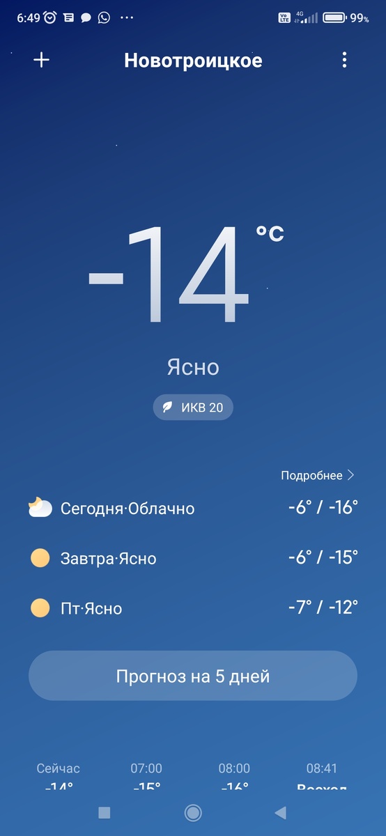 У нас сегодня морозно. Туман покрыл все деревья инием. На улице красота.