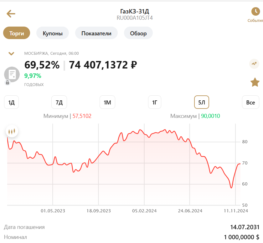Снижение чистой рублевой цены с пика в 81 028,84 руб (17 апреля 2024) до текущего уровня 72 070,88 (27 ноября 2024) оставило 11%.