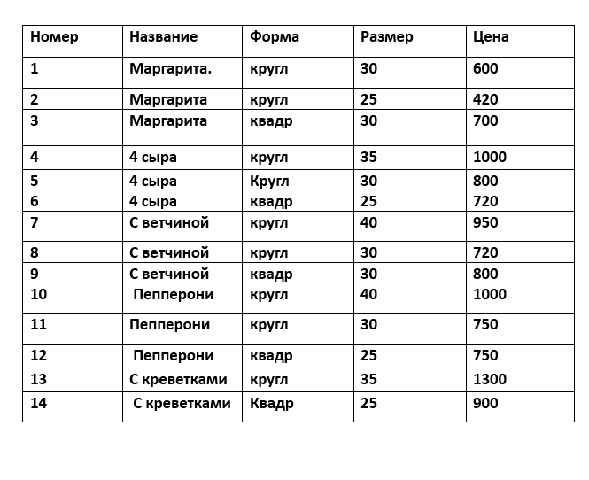 Она выбирала по каждому размеру самую дешевую, если это возможно, пиццу