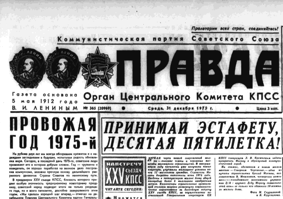 В качестве источника информации я взял последний выпуск 1975 года газеты "Правда". Вот парочка фотографий из газеты.