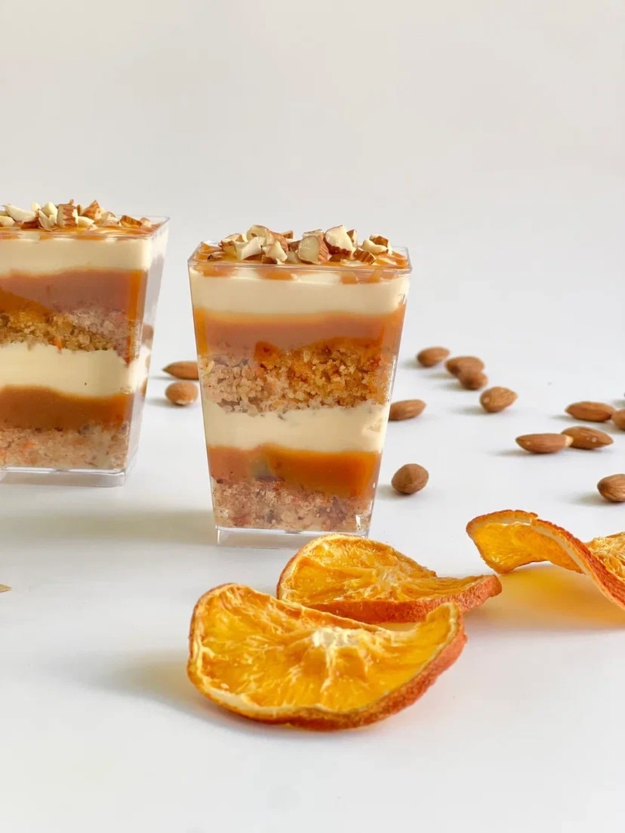 Этот сладкий десерт сделать легко и просто! 👉 Нежный апельсиновый крем, домашняякарамель и пряный морковный бисквит – собрали в себе все самые яркие ароматы и богатый вкус. И сегодня я поделюсь с вами одним из самых вкусных рецептов 🤤 Чтобы сделать ТРАЙФЛЫ – 4 шт по 175 гр – вам понадобятся: 🧡 Морковный бисквит: Яйцо: 1 шт (50-55 гр) Сахар: 50 гр Мука: 45 гр Растительное масло: 30 гр Морковь тертая и выжатая: 60 гр Грецкие орехи, миндаль: 25 гр Специи (корица, мускатный орех): 1/2 ч.л Цедра апельсина: 1/4 от шт Сода: 1/3 ч.л 🥕 Процесс приготовления: ▪️ Яйцо взбиваем с сахаром и щепоткой соли до пышной, светлой массы. Она должна увеличиться в объеме и побелеть ▪️ Затем добавляем растительное масло и на низких оборотах миксера перемешиваем массу около 30 секунд ▪️ Далее просеиваем муку вместе со специями и содой и аккуратно перемешиваем снизу вверх лопаткой ▪️ В конце добавляем тертую морковь с дроблеными орехами и перемешиваем лопаткой также снизу вверх ▪️ Выкладываем в кондите