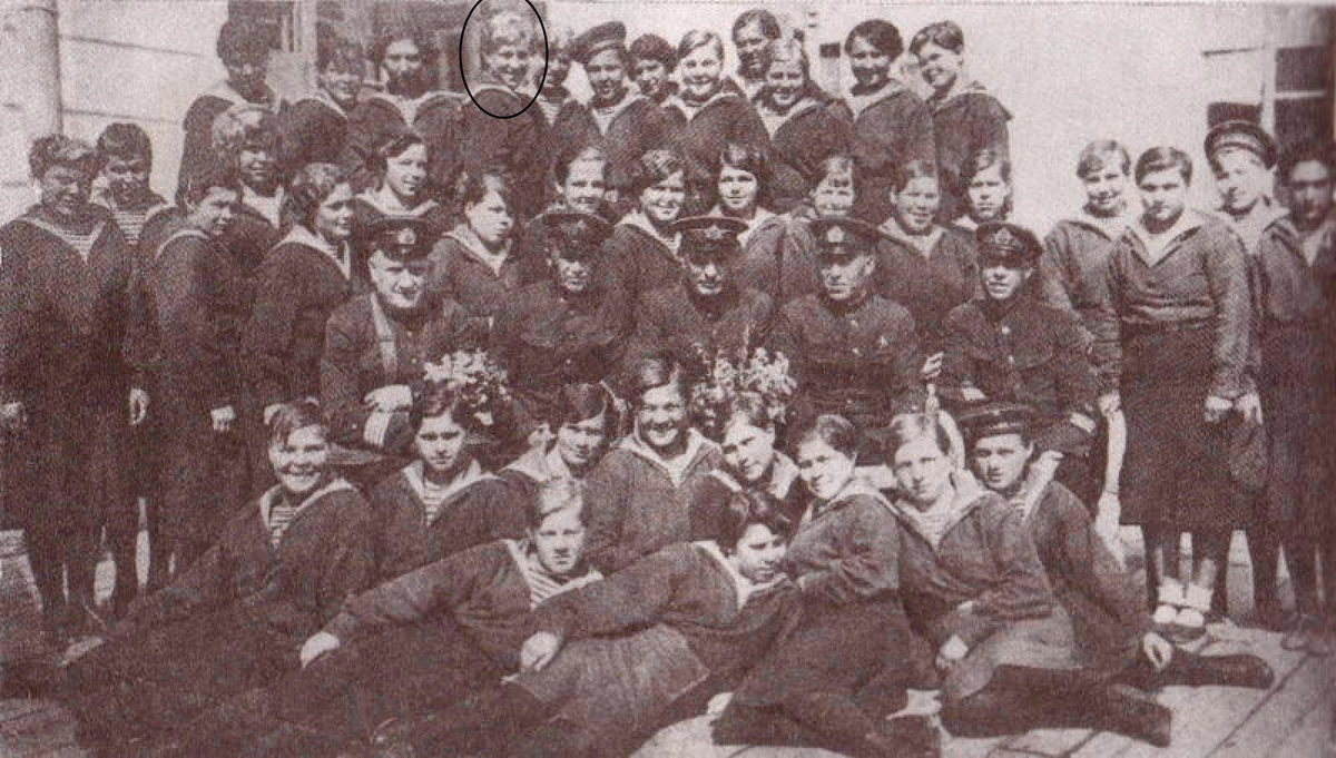 Есть у меня два два портрета Е.П. того времени. Вот этот, как мне кажется, сделан в начале ее службы. Лихая, заводная девчонка, певунья. Думаю, „зажигала“ она не слабо, не мало сердец краснофлотцев затронула.