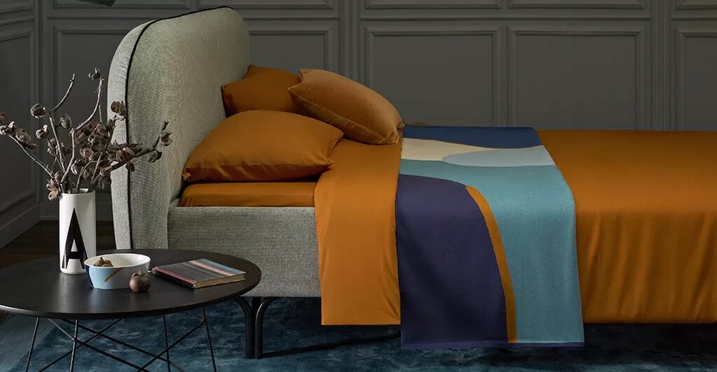 На фото: комплект постельного белья изо льна и хлопка цвета копченой паприки из коллекции Essential