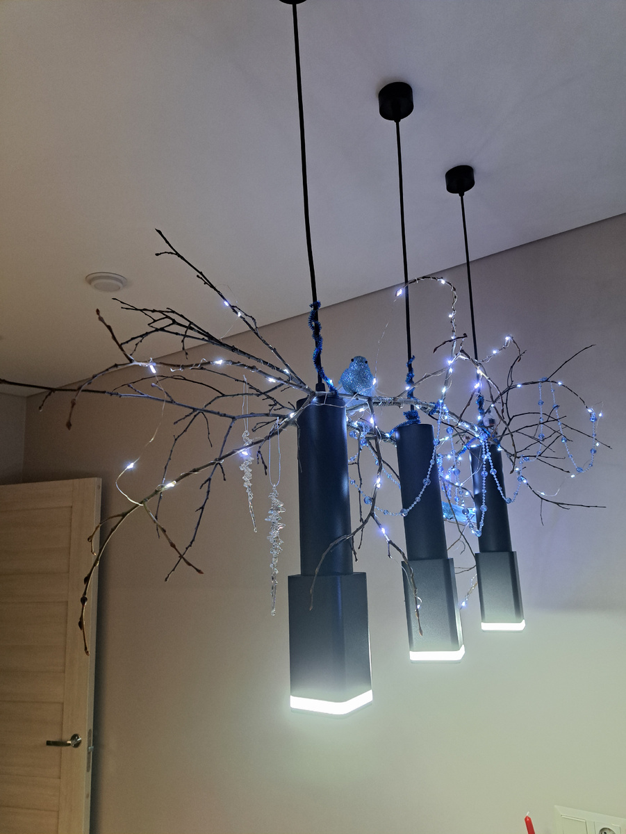 Даже подумать не могла, что декор, сделанный из веток для новогоднего стола задержится со мной на год. Уже писала, что очень хотелось задекорировать зону над столом, украсив светильники. Самое сложное было найти веток, наломать их (снег был глубоким). Далее высушила, скрутила между собой, привязала к стетильникам Декор купила в Фикс прайсе: гирлянда роса, бусы, сосульки, птички Ну вот, зима подходила к концу, и так стало жалко потраченного времени на прикручивание этой конструкции!!!! Что делать?! Решила, что просто ветки весьма универсалтны, например, для весны: Декор так же из фикс прайса, раздербанила ветки лаванды и сиреневый цветочки А потом наступила пасха: Яйца так же из фикс прайс. На осень кинула гирлянду из листьев. И вот уже почти новый год, а значит ветки готовы к обновлению декора. В этом году планирую дополнить их милейшей гирлянда в виде сосулек Светят тёплым светом Делитесь идеями декора)