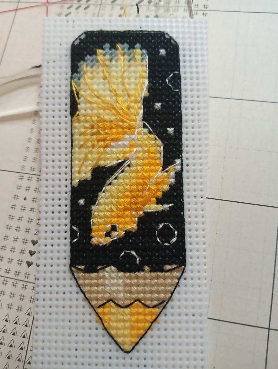 Это она только выглядит сложной. А по схеме очень простая. А ещё в ней аж семь (!!!) видов бэка. Но я получила урок. Даже в простой вышивке надо быть внимательной. Вот тут я весело шью фон и не замечаю, что ошиблась с цветом на самой рыбке. Вообще, карандашное безумие похоже окончательно захватило меня. Но я и не против. И да, конечно же я загадала желание рыбке... Какое?.... Думаю, не сложно догадаться... Такие дела)