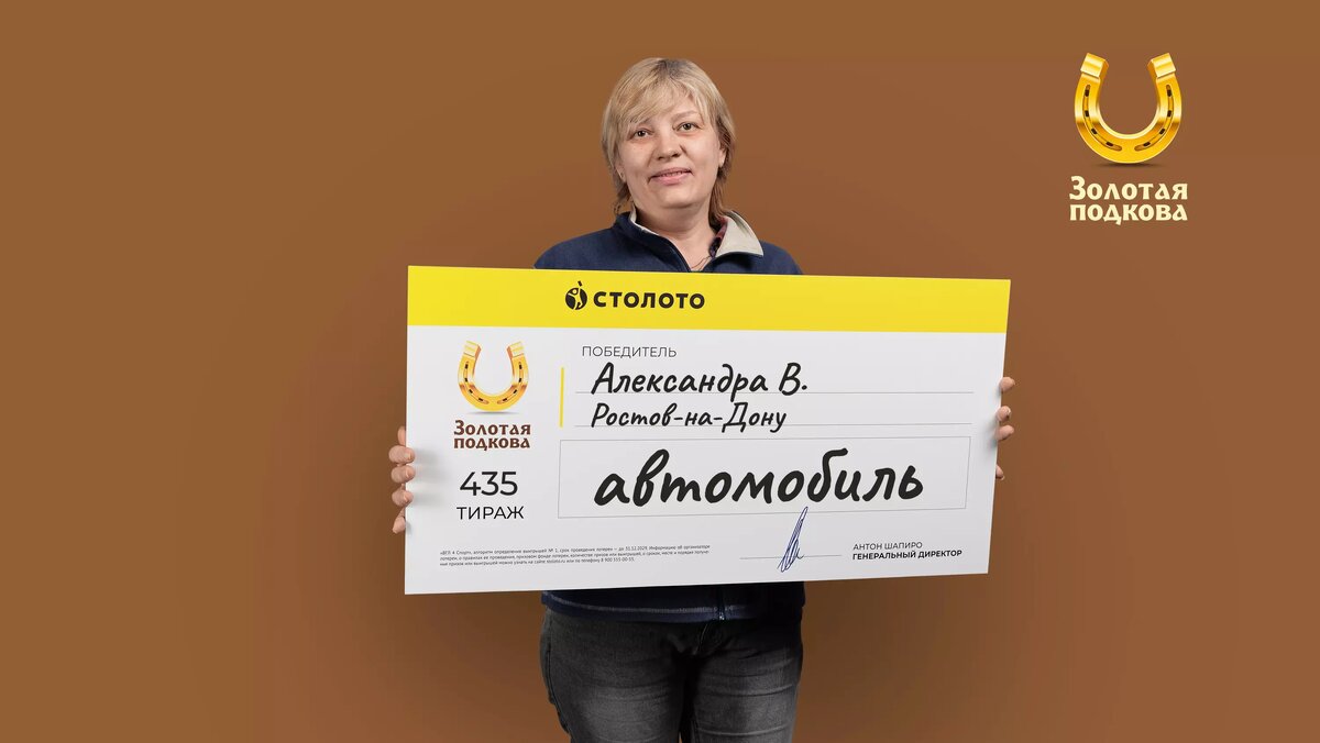 Кто-то из участников государственных лотерей от «Столото» предпочитает покупать билеты только для себя, другие дарят их в качестве подарка близким, а некоторые покупают билеты вскладчину. Именно так и поступила Александра В.* (по просьбе победительницы ее настоящее имя не публикуется). Жительница Ростова-на-Дону зашла в фирменный магазин «Столото» вместе с другом. Посоветовавшись, приятели решили купить вскладчину сразу пачку билетов «Золотой подковы», чтобы увеличить шанс на победу. В ходе 435-го тиража билет Александры выиграл 2 миллиона рублей на автомобиль. Приз победительница оформила деньгами.