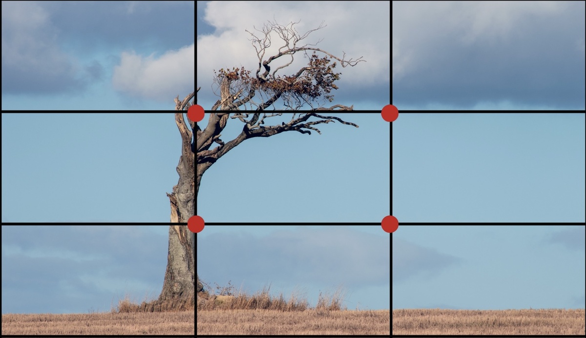 Основные элементы кадра, такие как главный объект или линия горизонта, располагаются вдоль этих линий или в местах их пересечения. Эти точки пересечения называются точками фокуса, так как именно они привлекают внимание зрителя.