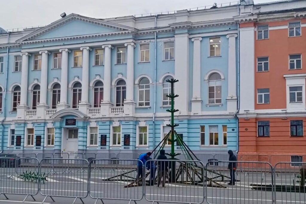 Подрядчик приступил к монтажу новогодней ели на площади Минина и Пожарского