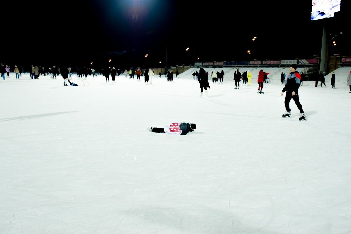 На крупных катках в городе царит один сценарий: кто-то впервые выходит на лёд, кто-то катается, словно родился в коньках, а кто-то с улыбкой наблюдает со стороны. А ещё там всегда есть фотограф, ловящий в своём объективе эмоции посетителей — счастье, азарт или смущение от неловкого падения.