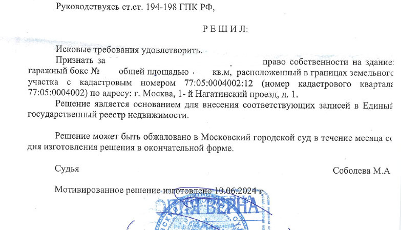 Очередным скандалом отметились власти при попытке снести ПГСК «Восход», расположенный на пересечении Нагатинского бульвара и Нагатинской набережной. Дело в том, что более 30 гаражей по решению Симоновского суда г. Москвы были признаны капитальными, и за их владельцами признано право на собственность. Но, видимо, властям очень нужен данный земельный участок и они пошли в атаку. Во-первых, решения суда были обжалованы в апелляционном порядке в Московский городской суд. Во вторых, еще до окончательного решения МГС, Префектура уже предвосхитила решение по делу и «признала» эти гаражи некапитальными. Решения Симоновского суда об обратном во внимание принято не было. В порядке «хватай мешки- вокзал отходит», так называемая «Окружная комиссия по пресечению самовольного строительства на территории Южного административного округа г. Москвы» приняла Протокол №9 от 22.11.2024 г., где «признала» данные гаражи некапитальными и решила их снести. Протокол даже еще не вступил в законную силу (вступает