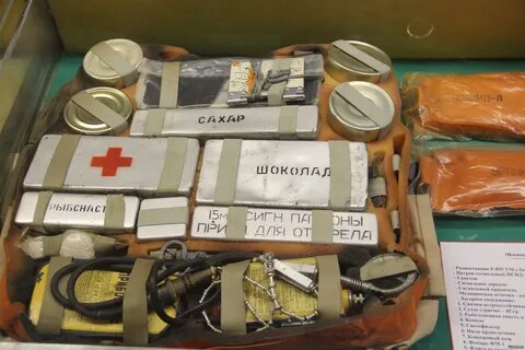 Во-вторых, - «медицинская аптечка». Она небольшая, есть в ней йод, бинт, лейкопластырь, с этим всё понятно. Интерес вызывали два наименования лекарственных средств. Это шприц-тюбик, который был обезболивающим средством, кажется, это был «промедол», его можно было сразу вкалывать в тело и вводить средство. Ещё был «пантоцид», это таблетки, которыми можно было обеззараживать воду для питья. Было в аптечке несколько упаковок разных таблеток, но предназначением их мы не заморачивались, потому как в аптечке была инструкция. Интересно, что медицинская аптечка была упакована в металлическую коробочку, которую можно было использовать как сковородку для кипячения воды, чтобы она была пригодной для питья, или подогреть что-то. В-третьих, - «аварийный запас пищи». Насколько помню, здесь было штуки три плитки шоколада в металлической коробке, четыре сто граммовых баночки мясных консервов, небольшая коробка галет, грамм триста сахара-рафинада, соль. Был в наборе и консервооткрыватель. Интересный момент, - помню, что в самом начале моего знакомства с НАЗом, я видел в составе НАЗа сыр, пару баночек, точно таких, как и мясные консервы. Даже припоминаю, что демонстрировалась вскрытая баночка, с белым содержимым. Но позже никогда больше не видел сырных консервов и не слышал даже упоминания о них!