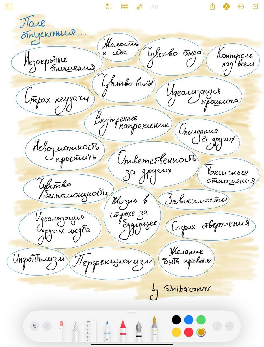 Во всяком случае, я планировал его изначально создать. Но как показала практика, получилось «поле» 😅 Это 20 пунктов с которыми необходимо работать, чтобы жизнь была легче, красочнее и счастливее. В понедельник, два часа на эфире в канале тренинга я рассказывал следствия каждого пункта, откуда они берутся и почему с ними важно работать! Если ещё не смотрели эфир, в канале тренинга есть информация, как его забрать. На эфире дал домашнее задание, так что кто был, точно знает что с этим «полем» делать… Сегодня продолжим работу, поэтому жду вас в 19:00 по мск на втором эфире из трех нашего «марафона отпускания»! @nibaranov, всех обнял! 🙏📿