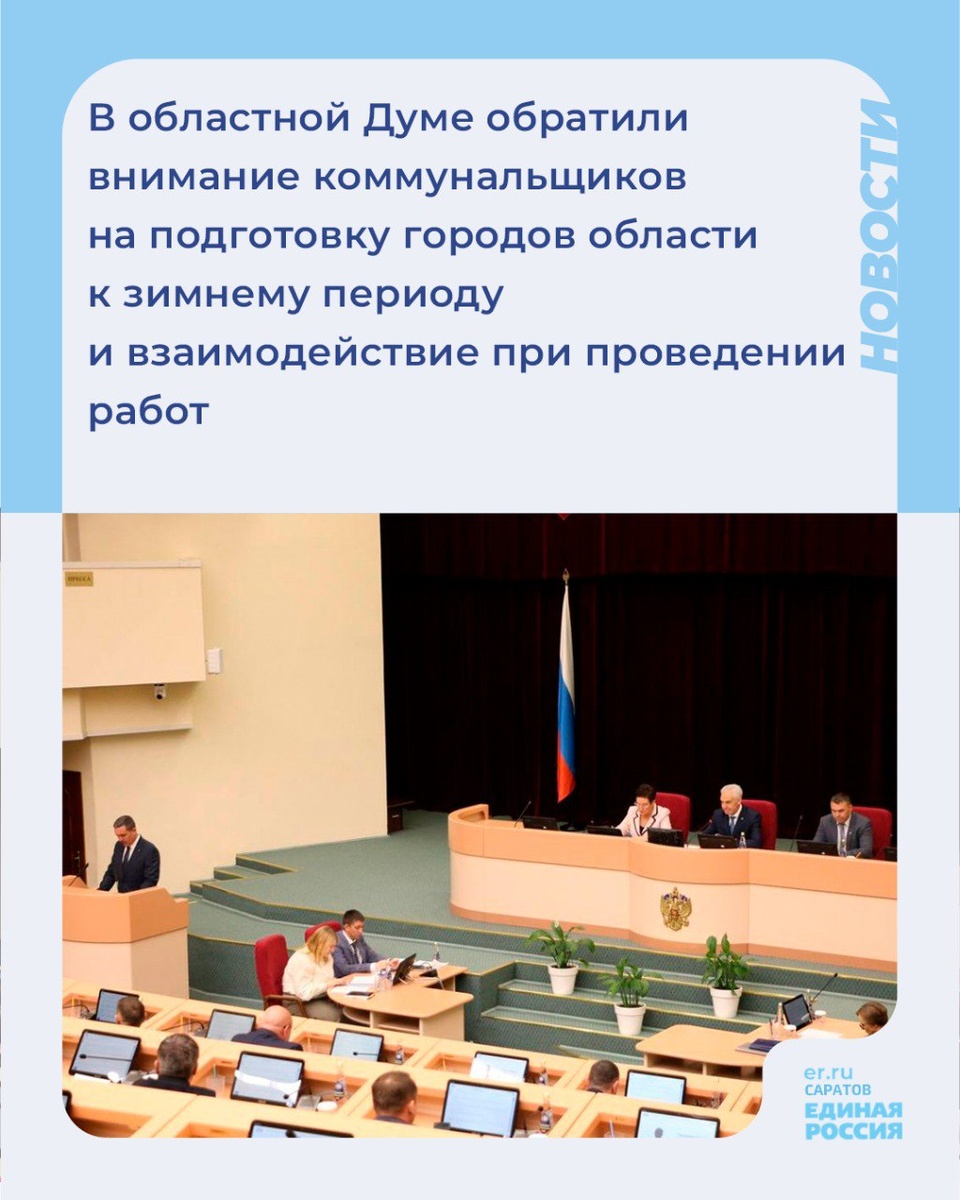 ❔Вопрос готовности коммунальных и дорожных служб Саратова и городов области к предстоящей зиме был затронут в начале очередного, 44-го заседания областной Думы. Председатель комитета по вопросам жилищной, строительной и коммунальной политики Александр Бурмак анонсировал запланированное в регпарламенте совещание по подготовке к содержанию дорог в зимний период в Саратове, а также призвал всех ответственных за уборку снега и наледи качественно подготовиться к предстоящим снегопадам. 💬«Уборку муниципальных дорог в областном центре закрепили за районными администрациями, созданы специализированные организации. На недавнем заседании областной Думы были выделены дополнительные средства на реагенты, нас уверяли, что этого должно хватить. Так выполняйте свою работу! Ситуация может усугубиться многочисленными порывами на коммунальных сетях, из-за чего улицы вновь превратятся в каток. Этого допустить нельзя!» - обратил внимание Бурмак. Отдельно остановившись на проблемах с коммунальной инфр