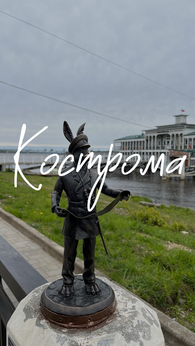 В Кострому мы ехали погулять и зайти в кофейню к моей знакомой. Четкого плана не было. Но план сам нас нашел... мы припарковались недалеко от Центрального парка и начали свою прогулку с него. В парке нас догнала бабушка с внучками. Её вопрос был очень неожиданным... "вы не видели тут зайцев?", оказалось речь шла о медных маленьких зайцах (как хомлины в Калининграде) установленных по всему городу. Спустя 5 минут заяц был найден, бабушке показан, а мы отправились к Беседке Островского.