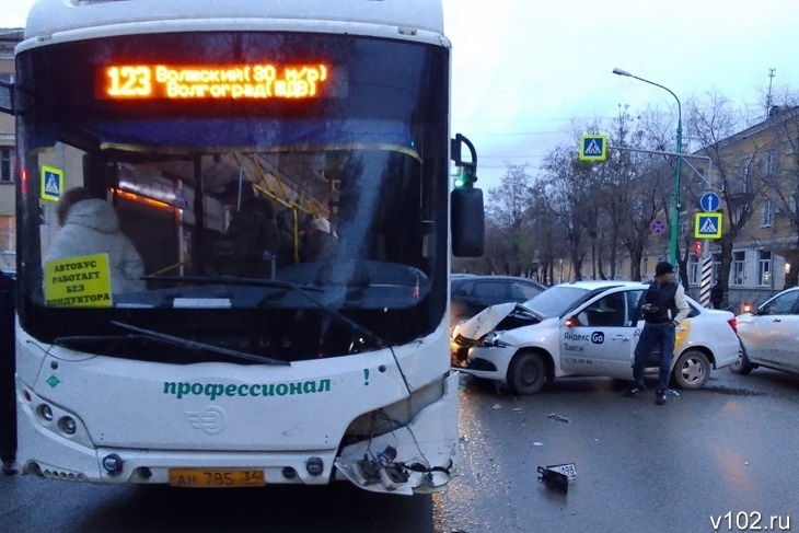 Опубликовано видео столкновения автобуса №123 Волжский-Волгоград и такси