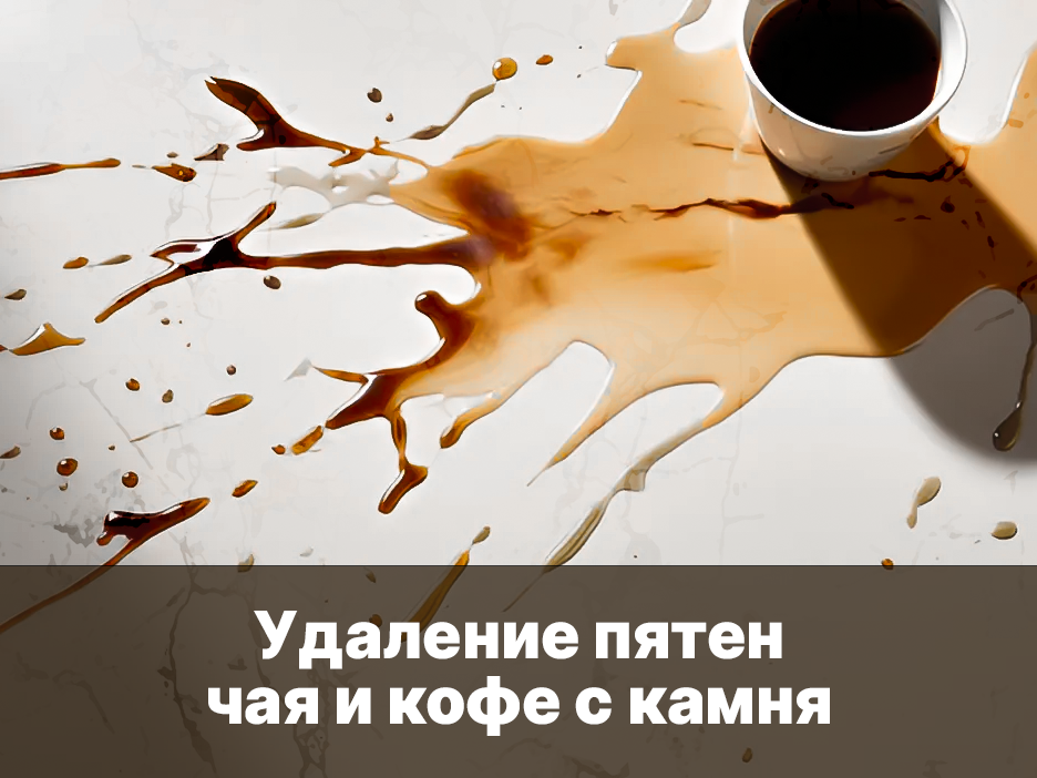Пятна от чая, кофе и других цветных напитков – это проблема, с которой рано или поздно сталкивается каждый владелец столешницы из камня. В этой статье мы расскажем о средствах, которые эффективно справляются со следами чая, кофе и других красящих средств на поверхности натурального и искусственного камня. Красящие компоненты, входящие в состав чая и кофе, проникают в поры камня и оставляют пятна, особенно заметные на светлых поверхностях. Кроме того, эти красящие вещества могут примешиваться к известковому налёту, окрашивая его и образуя ещё более трудновыводимые загрязнения. К другим веществам, способным окрасить камень, можно отнести: • Красное вино;