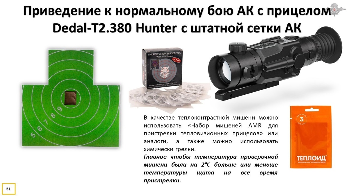 Приведение к нормальному бою АК с прицелом Dedal-T2.380 Hunter с штатной сетки АК Приведение к нормальному бою АК с прицелом Dedal-T4.642 Hunter с штатной сетки ПК Приведение к нормальному бою АК с прицелом Dedal-T4.642 Hunter с штатной сетки СВД Приведение к нормальному бою АК с прицелом Dedal-T4.642 Hunter с штатной сетки ВСС Приведение к нормальному бою РПГ-7 с тепловизионный прицел Dedal «DS-T3.Matrёna» Выверка АГС-17 (АГС-30) с тепловизионным прицелом Dedal «DS-T3.Matrёna» Приведение к нормальному бою АК с прицелом Dedal-T2.380 Hunter без штатной сетки