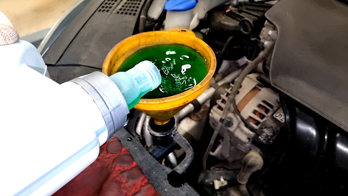 Далее покупаем две канистры свежего антифриза, который подходит для вашего автомобиля (у каждого производителя есть свои допуски). Заливаем первую канистру. Она смешается с остатками дистиллированной воды, также греем (примерно 15 – 20 минут). Сливаем этот антифриз. Он будет уже светлый