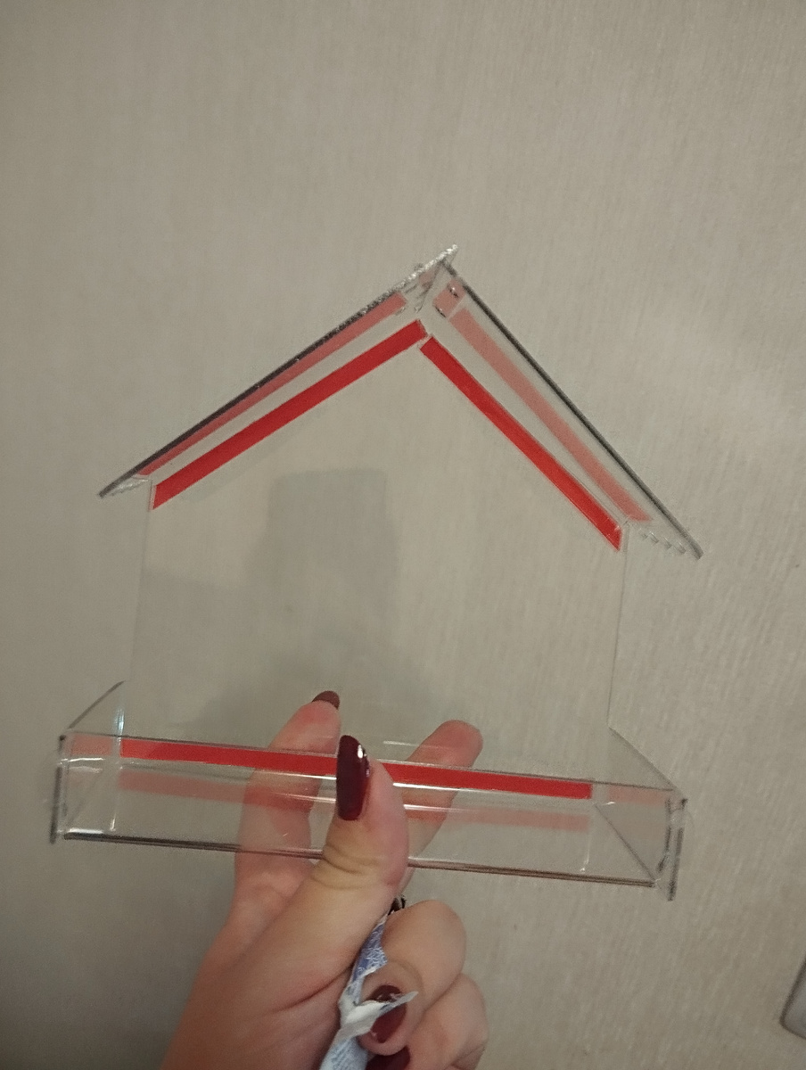 Приехала наша кормушка. Вечером ее установили (приляпала на клейкие ленты и ещё чуть клея добавила).