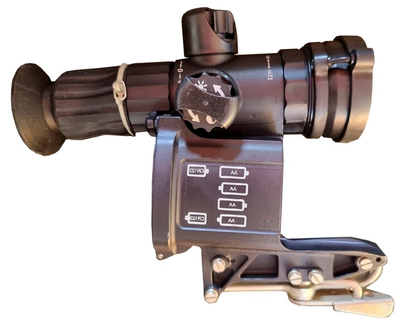 - закрепить проверочную теплоконтрастную мишень на щите на расстоянии 100 м. Проверочная мишень должна быть теплоконтрастную щиту, т.е. температура проверочной мишени должна быть больше или меньше температуры щита на все время приведения оружия к нормальному бою; -установить оружие на прицельном станке; -установить на прицельной планке оружия дальность 100 м; -навести оружие по механическому прицелу на точку прицеливания на расстоянии 100 м (точка прицеливания - точка А); -установить прицел на посадочное место оружия; -привести прицел в боевое положение; - при необходимости нажатием бокового энкодера 5 выбрать знак «УВ». Поворотом этого же энкодера установить необходимое значение цифрового увеличения «4Х»; -добиться четкого изображения мишени поворотом фокусировочного кольца 2; - проверить совпадение центрального прицельного знака с точкой прицеливания А. Если центральный прицельный знак не совпадает с точкой прицеливания А, то необходимо: кратковременным нажатием до 4 с бокового энкод