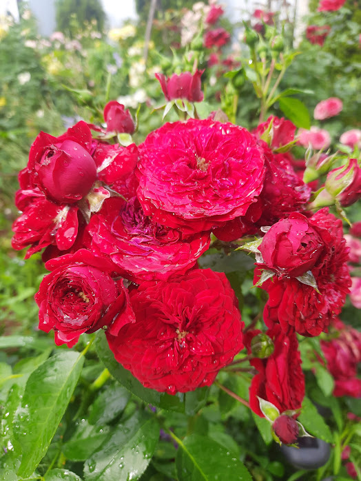 Доброе утро! Интересная рубрика. Роз без глянца у меня в сезоне было хоть завались).Всякие разные. Наоборот, искала розу без изъяна и меняла освещение в фото, поскольку и заморозки, и нашествие бронзовок и трипсов, клещей и белокрылки делали мне нервы в сезоне и убивали красоту. Тем больше я начала ценить красные флорибунды. Друзья мои, они неубиваемые! Какую ни возьми, шедевр устойчивости. Никто не сожрал мою Красную шапочку), Rotkappchen, радовала весь сезон. Глянец потускнел из-за размера, выросла до 120 см, не верь глазам своим, глядя в Розбук, это называется)