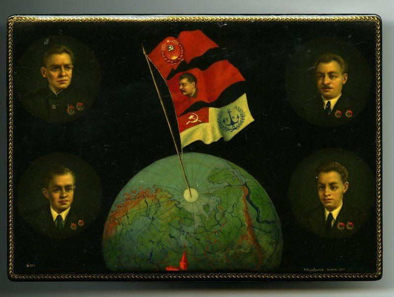 Иван Серебряков (1885—1947). Шкатулка. Папанинцы. Палех. 1938
