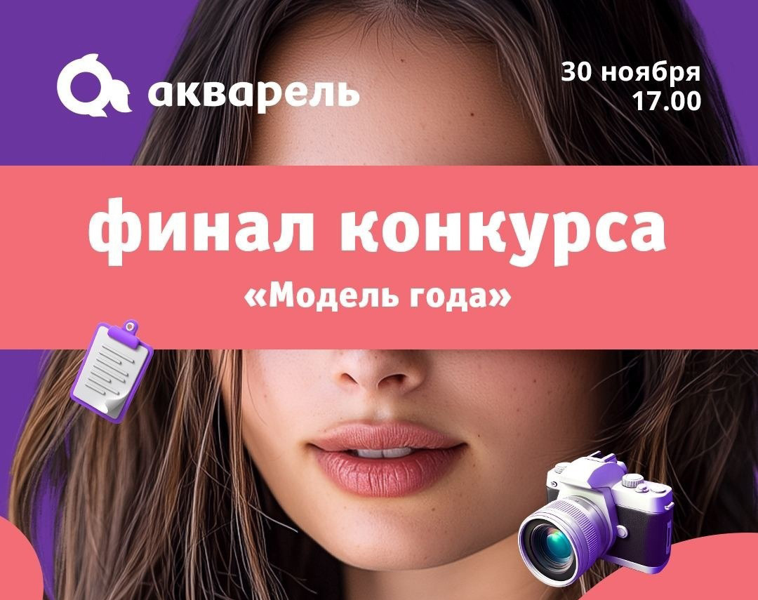 Где: центральный атриум ТРЦ «Акварель» Что вас ждёт в этот день? 1. Финал конкурса «Модель года» Свет софитов, вспышки камер и восторженные взгляды зрителей уже ждут вас в ближайший уикенд. В центральном атриуме ТРЦ состоится финал конкурса «Модель года», где участники конкурса продемонстрируют навыки, приобретённые за 2 месяца активной подготовки. Участники проекта с нуля осваивали теорию и практику моделинга – учились ходить по подиуму и позировать перед фотокамерами, узнавали о тонкостях работы моделью, про