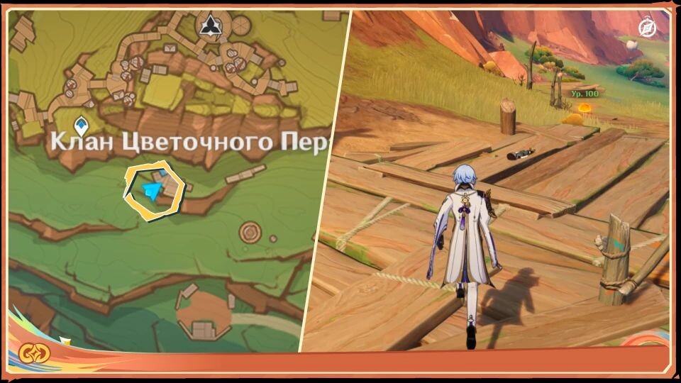 ㅤРядом с землями Клана Цветочного пера, вы услышите мольбы о помощи. Направляйтесь к источнику шума, чтобы оказать помощь человеку, который попал в беду. Оказавшись на месте, вы увидите мальчика и как только подойдёте ближе, запустится кат-сцена.