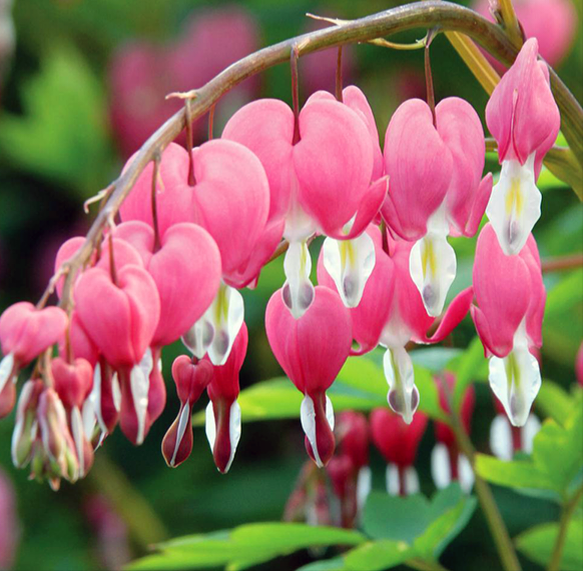 Если вы хотите чтобы ваш участок выглядел изысканно, а в саду царила романтическая атмосфера, стоит обратить внимание на такое растение, как дицентра. Ее изящные изогнутые стебли и яркие цветы, похожие на сердечки, придают саду утонченности и элегантности. Растение еще называют "разбитое сердце", за необычную форму цветов. Раньше этот цветок был очень популярен, особенно среди аристократов, позже стал забываться, сейчас же вновь все чаще встречается на загородных участках, и в озеленении городских улиц. Дицентра представляет собой кустистое растение с резными листьями и кистями соцветий. Высота растения варьируется от 30 см до 1 метра. Окрас нежных бутонов бывает розовым, белым или светло-красным. Цветение начинается в конце весны, и длится весь июнь. Чаще всего дицентра произрастает на слегка затененных участках. К грунту она непривередлива, но лучше подойдет легкая, умеренно влажная, дренированная и насыщенная питательными элементами почва. Поливы проводят регулярно и умеренно, та
