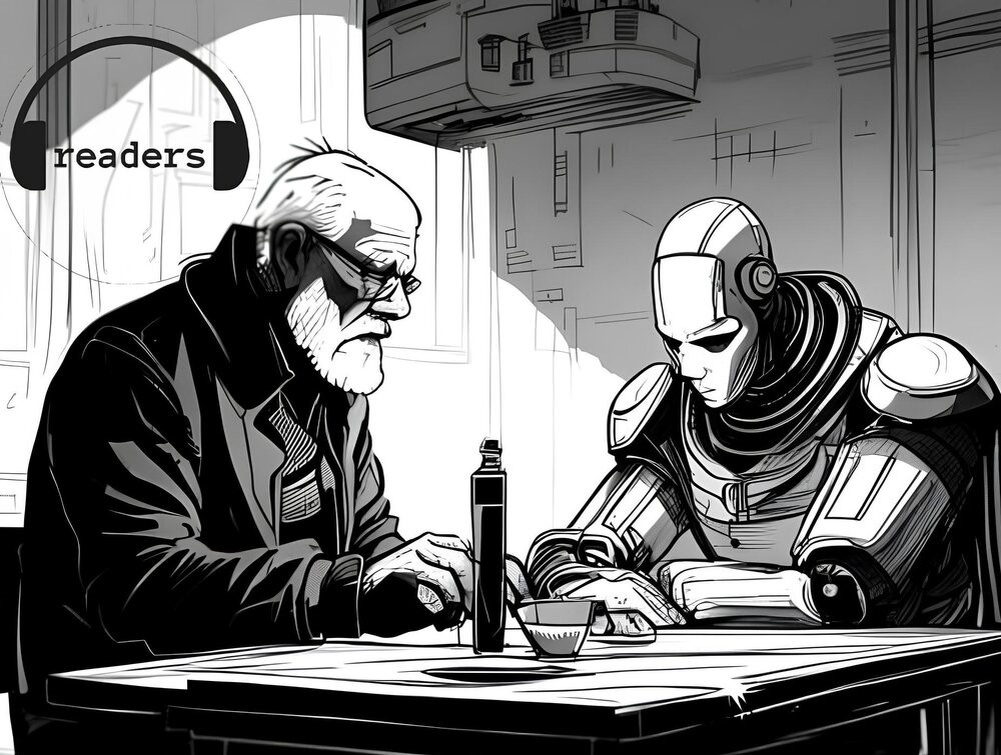 За время участия в Великой войне против машин Ацамаз сам превратился в машину. Частично сохранился кожный покров, мозг и два голубых огонька в мутных белках глаз, глядя в которые можно было обнаружить человека, спрятанного за стальной оболочкой. Его сослуживцы поначалу видели в нем врага. «Вроде воюем с роботами, а тут на соседней койке такой же лежит», — жаловались они командиру. Когда же вследствие полученных травм каждый в отряде заимел себе минимум по одной бионической детали, к изменениям в облике Ацамаза стали относиться снисходительно, а после и сочувственно. Сердце его больше походило на двигатель какого-нибудь столетнего автомобиля, чем на орган кровообращения. Да и крови в теле уже не осталось, это огорчало сильнее всего. Как пролить кровь за светлое будущее, если ее нет?