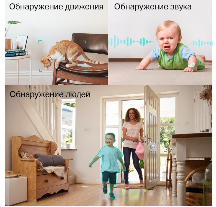 - Дополнительные функции: Датчики движения, автоматическое уведомление
