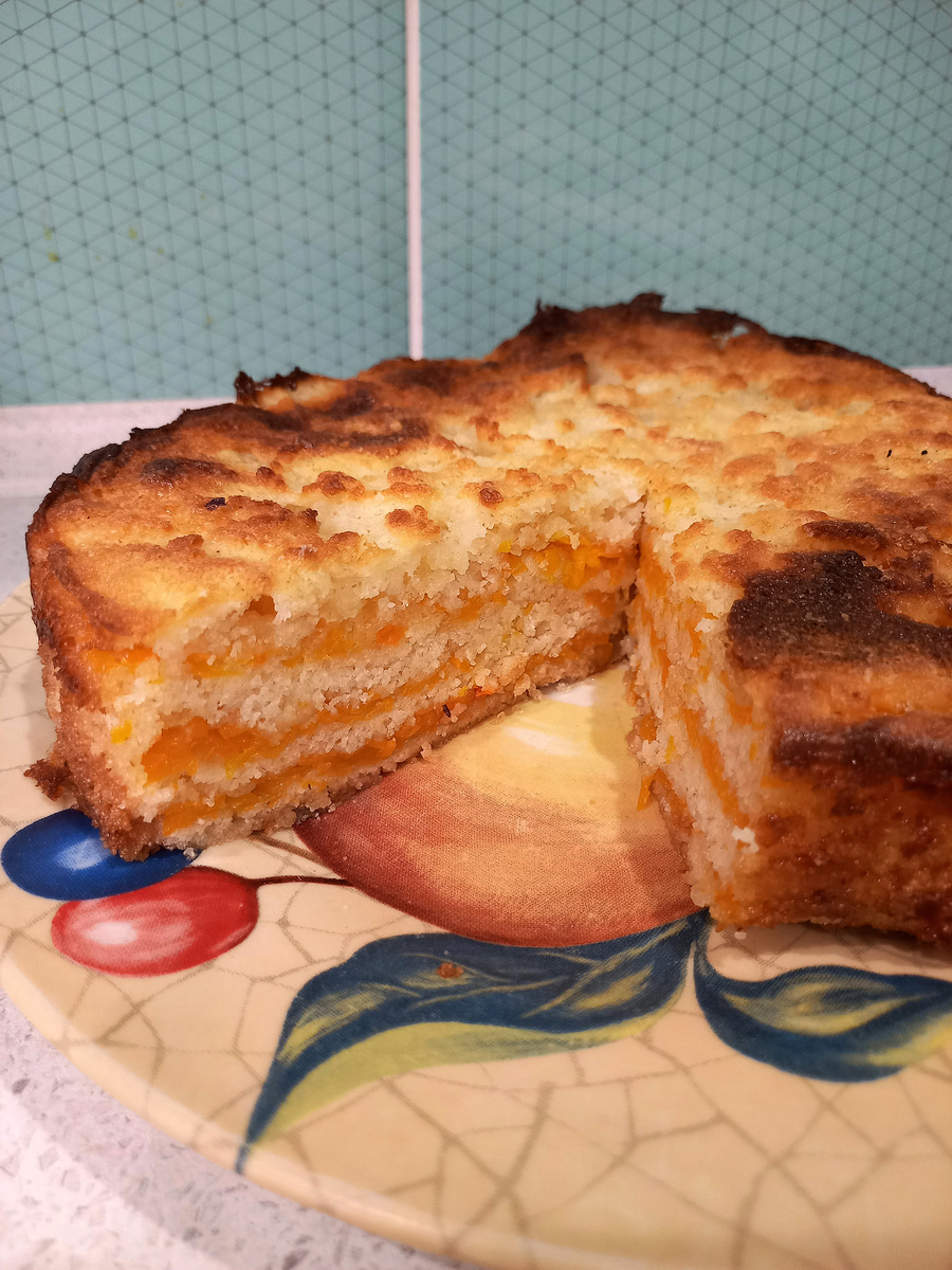 Самая активная подписчица и читательница нашего канала Марина Г.✨ настолько впечатлилась публикациями о блюдах из тыквы, что не упустила возможность поделиться и своим оригинальным рецептом. Я испекла насыпной тыквенный пирог по ее рецепту. Впервые испробовав его, мои близкие были в полном восхищении. Поэтому я еще трижды радовала их необычной и необыкновенно вкусной выпечкой. Правда, всякий раз вносила небольшие дополнения на свое усмотрение. Рассказываю, что получилось в итоге. Все очень просто, а фишка в том, что не требуется замешивать и расстаивать тесто для пирога. Для этого достаточно взять сухие ингредиенты: по одному стакану сахара, манки и муки и пакетик разрыхлителя. Перемешать смесь и разделить на четыре равные части. Для начинки натрите на крупной терке мякоть небольшой тыквы, присыпьте ее сахаром по вкусу, подождите, пока выделится сок. Натрите цедру половины лимона и половины апельсина, выдавите сок из этих цитрусовых, соедините с тыквой, перемешайте, разделите на три ча