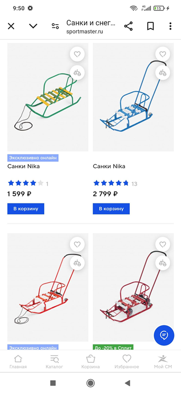Выбрать санки было непросто. Так как с одной стороны хотелось купить что-то по-настоящему надежное и удобное, а с другой - не переплачивать при этом. Искала их в магазине «Спортмастер», качество их товаров обычно всегда достойное, плюс скидки часто бывают и у меня как раз на тот момент на их клубной карте накопилось солидно бонусных баллов, которыми до 30% покупки оплатить можно было.