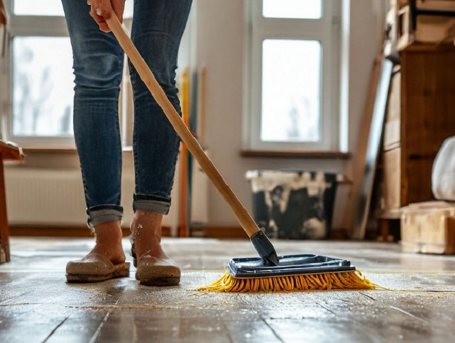 Ремонт — это обновление и свежесть в доме, но после него часто остаются следы, которые могут испортить радость от результата. Один из самых неприятных моментов — белый налёт на полу. Он появляется из-за строительной пыли, остатков побелки или шпаклёвки. Сегодня я расскажу вам, как эффективно отмыть пол после ремонта, какие средства использовать и какие методы подойдут для разных типов покрытия. Соблюдая эти советы, вы сможете легко справиться даже с сильными загрязнениями. Чтобы убрать белый налёт, важно правильно выбрать моющее средство. Уксус — простой и доступный помощник в уборке. Он растворяет остатки побелки и устраняет разводы. Добавьте 100 мл. уксуса на 5 литров тёплой воды, перемешайте и протрите пол тряпкой. Если налёт сильный, можете увеличить концентрацию уксуса, но обязательно проветривайте помещение, чтобы избавиться от запаха. Соль усиливает действие уксуса и помогает справиться с сильным налётом. Растворите 3 столовые ложки соли и 100 мл. уксуса в 5 литрах тёплой воды.