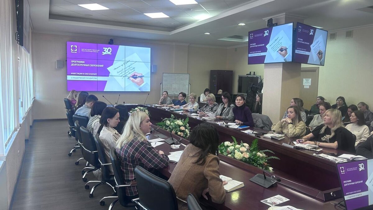 Информационная встреча с представителями Негосударственного пенсионного фонда носила интерактивный характер. Работники НПФ Мария Юрьевна и Наталья Викторовна рассказали о том, из каких частей состоит пенсия, какие новые программы пенсионных накоплений появились, в частности о новой программе долгосрочных сбережений.