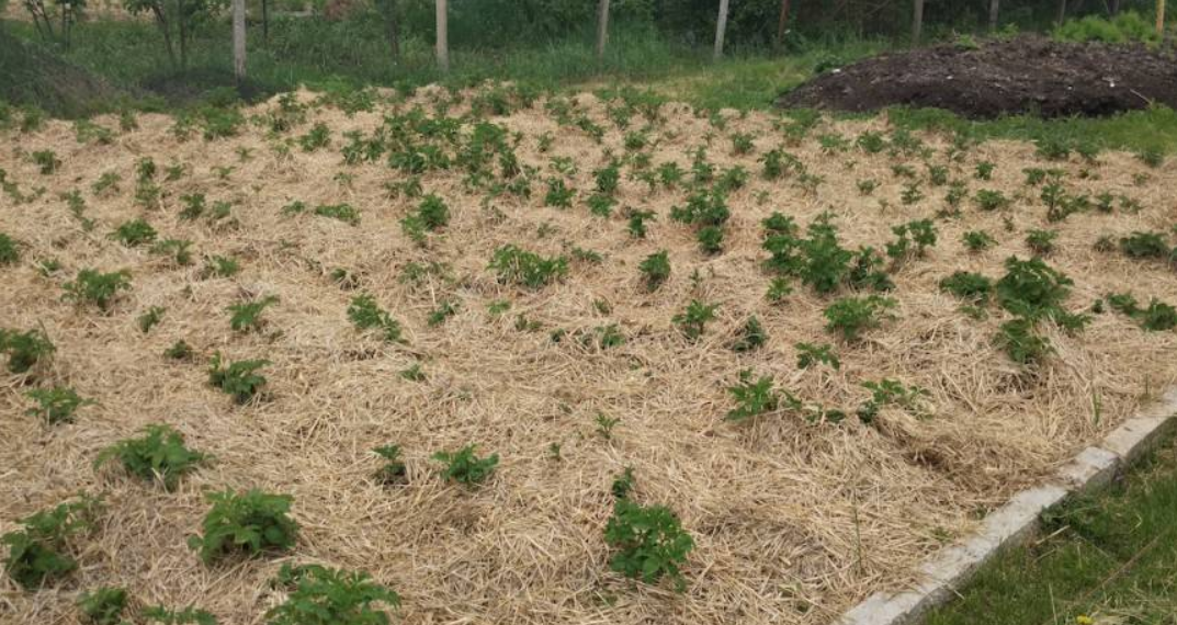 Выращивание картофеля под соломой Выращивание картофеля под соломой является не таким трудозатратным, как например другие способы. В этом способе есть свои минусы и свои плюсы. Смотрим? Подготовка участка. На этом этапе подготавливать земельный участок не нужно. Нужно просто разложить пророщенный картофель на поверхности гряды на расстоянии друг от друга 25-30 см. Как видите, тут все намного проще. Процесс посадки. После раскладки клубней их укрывают слоем соломы толщиной около 30 см. Важно, чтобы слой соломы был достаточно плотным и не рассыпался. Солома помогает удерживать влагу и предотвращает рост сорняков. Уход за посадками. Уход за картофелем под соломой минимален. Полив требуется только в засушливую погоду, и то под корень, чтобы не намочить ботву. Благодаря соломе, земля остается влажной на протяжении всего периода роста. Уборка урожая. Сбор урожая при таком методе — одно удовольствие. Просто разгребаешь солому граблями и собираешь картофель вручную. Первые корнеплоды можно соб