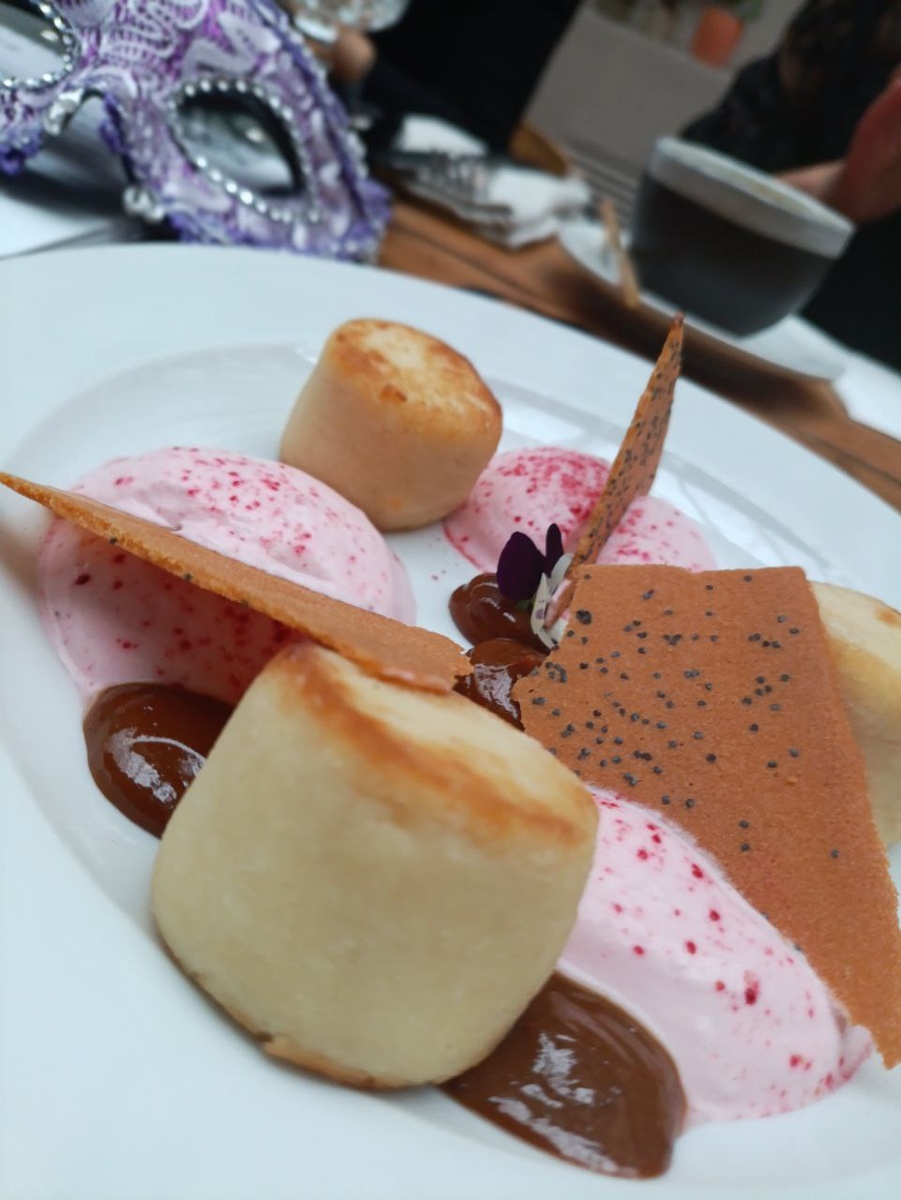 Сырники из ресторана Bagebi. Ресторан грузинский, соседствует с галереей Зураба Константиновича Церетели. Великолепное место, была несколько раз с мужем и с Александром Ивановичем, но мы, видимо, просто ели, с девочками ходить в классное место особенно приятно. Множество локаций, стильный интерьер. Сырники из сыра Надуги и творога на рисовой муке с кремом из брусники и соусом из вареной сгущенки. Я не видела, что они на рисовой муке, это совсем не мое, не люблю и не понимаю, если бы я спросила, я бы не заказала, но я не спросила, а села с умной отпилингованной мордочкой и заказала! Кто дурак? Правильно, умная женщина сегодня дурочка. Мало того, я не знаю, что такое Надуги.... Собственно, занавес. Долгая, но великолепная подача, чипсы какие-то воткнули, их, кстати, я съела с удовольствием. Соус тоже понравился и сгущенка, естественно. Красивые сырники, совсем не на мой вкус, никогда не повторю. А вот хачапури по-аджарски прекрасно заехало. Красивые сырники из ресторана Bagebi. В рестор