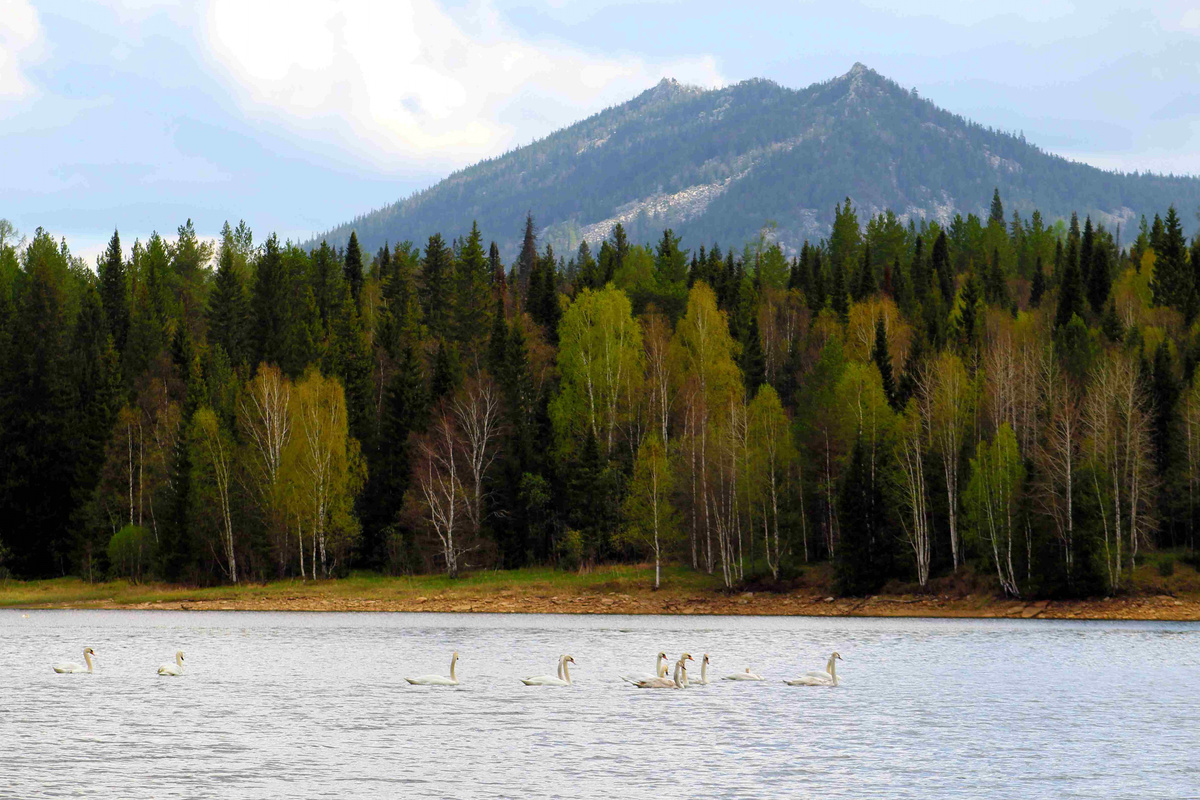 Кузмич, смотритель водоохранки, вышел из своей строжки, снял с цепи Бурана и начал обход своих владений по правому обрывистому борту водохранилища. При полой воде по кромке озера прохода нет, вот и шел Кузмич по косогористому склону, прыгая с одной кривульной тропки на другую, огибая кокорины и валежник. Листва еще даже не проклюнулась и акватория хорошо просматривалась в ажуре голых ветвей. Серый лед доползал почти до Старой плотины, скрывая стволы древних шахт по кромке хвощевого плеса. Туда и вышел Кузмич. По наледи он дошел до «быков» плотины и вскарабкался по бетонному тротуару на вершину дырявого остова. Чтобы пересечь древнюю конструкцию нужен глаз да глаз, иначе оступишься в недоглядках и уйдешь через дырку в бездну бушующего водоворота. На той стороне, где тело плотины образует насыпь, кончаясь руковом водоспуска, на небольших глубинах держится рыба, а вместе с ней и браконьеришки. Кузмич знает, кто, где и когда нарушает режим водоохранной зоны питьевого водохранилища. Но не в тот раз. От дела его отвлекло удивительное видение. На тихой глади в устье реки застыла стая лебедей, аккурат по контуру смотрящей в водное зеркало Двуглавой сопки. Он в сотый раз пожалел, что за столько лет так и не приучил себя брать в рейды фотоаппарат. Хотя с такого расстояния его «Зоркий» не запечаплел бы и толики той завораживающей картины лебединого парада. В прошлом лесник, он порадовался за прибавку к местной фауне этого редкого вида. Теперь рейды Кузмича в устье реки стали ежедневными. По крутояру правобережья он изловчился подкрадываться к стае на близкий дозор. В семье тесьминских новоселов он подсчитал с полдюжины пар и с десяток молодых одиночек. Красавец-вожак выделялся из сонма свиты особым величием – размером, властным обликом и одновременно гордым благородством.